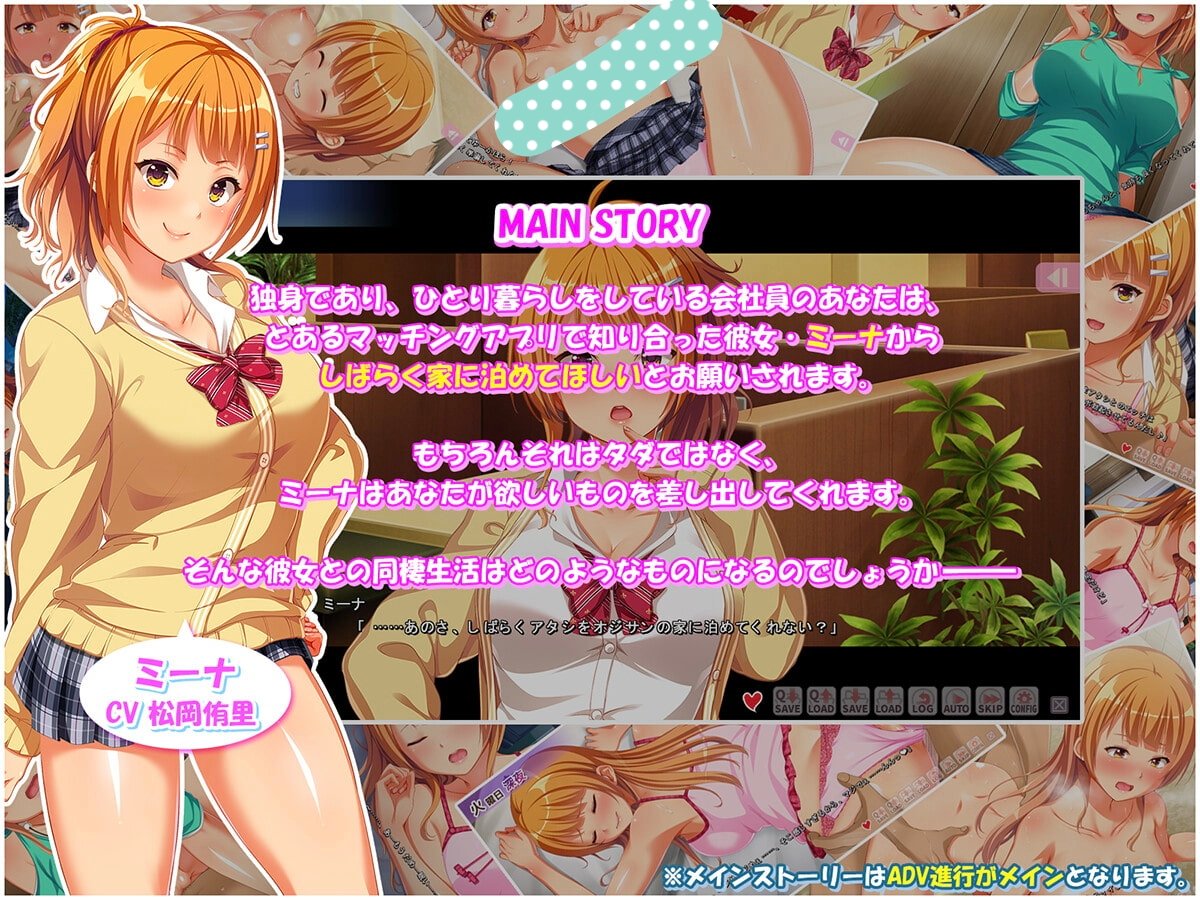 本作是一款与无家可归的辣妹·米娜享受同居生活的ADV,