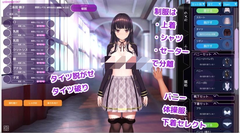 并非只是鉴赏固定流程的演出,而是由您自己成为主人公,随心所欲地调教女孩子吧!