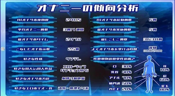 即使在AI自慰支援之外射精的记录也会保存,分析《距上次自慰经过了多少小时》《是否存在因星期几导致的易射精差异》《经常自慰的时间段是何时》等,并反映在当天的自慰指示中,以进行精度更高的射精管理。