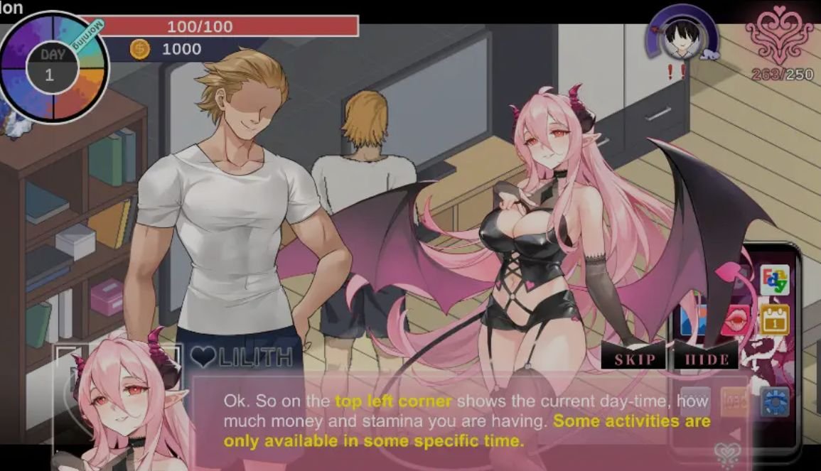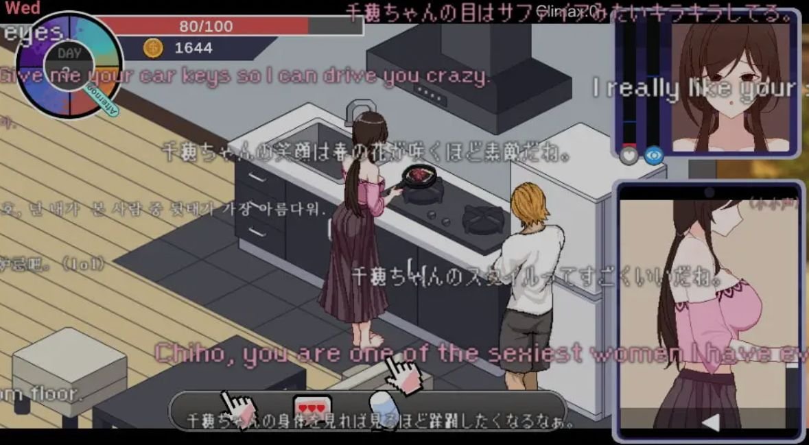 游戏每天分为早上、下午、晚上、午夜四个时段,每个时段可选择不同行动,如打工赚钱、与女主角互动、购买道具等。