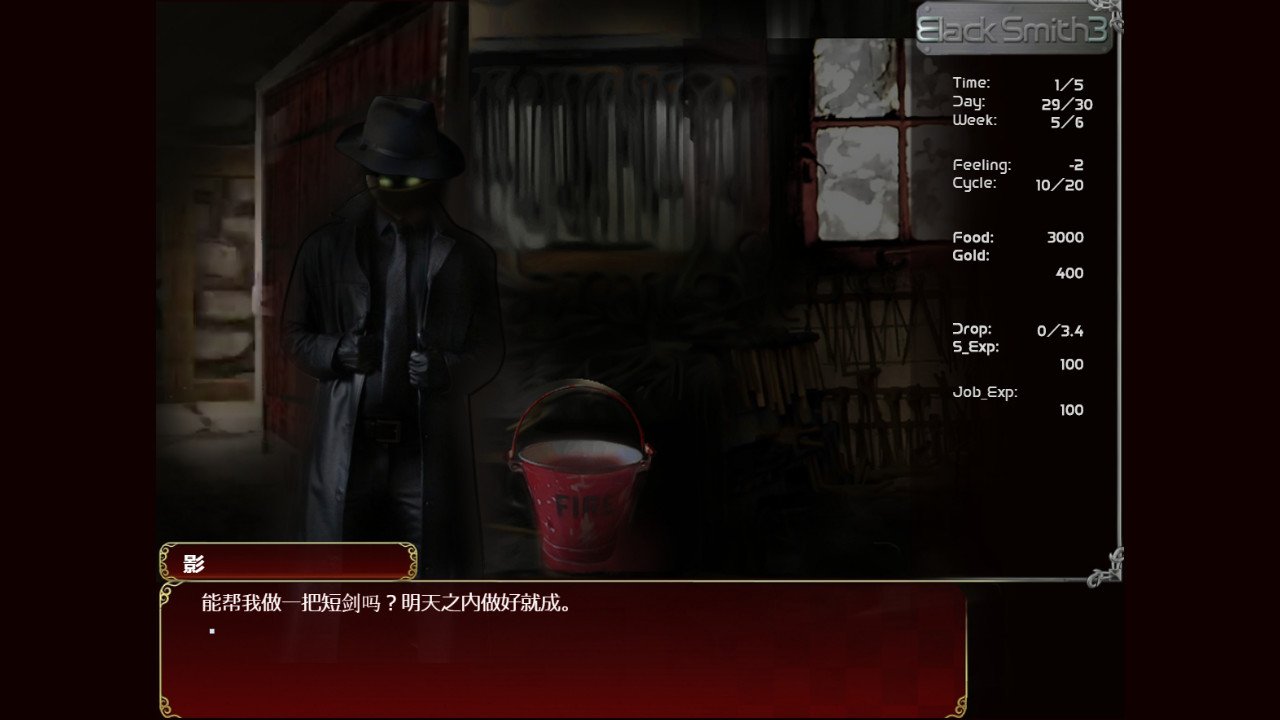 你是一个小乡村里的BlackSmith(铁匠)。每天都辛苦地工作,努力赚钱。白天挥舞铁锤敲打着作品,认真地完成自己的工作。到了晚上,拿着赚到的钱跑到城市,直奔一直在等候你的清纯且可爱的的姑娘那里。请多积累BlackSmith的经验,提升锻造技艺,让作品更加出色,争取卖到好价钱。–游戏内容–我是一位铁匠,虽然还是一个菜鸟,不过每天都在勤奋工作。我出乎意料地喜欢这份工作。我用工作赚来的钱去妓院享乐。之前我很中意的一个女孩子已经辞职不干了。不过那个时候我也没什么钱,所以也并不经常去。这次店里新来了一个超可爱的女孩子,令我为之疯狂。即使在工作时,我的脑海里也满是她。虽然我希望每天都能见到她…可是钱…。只能制作便宜货的我并不能攒够每天去妓院的钱。因此我必须日益磨砺铁匠的技艺,力求增加每天的收入。