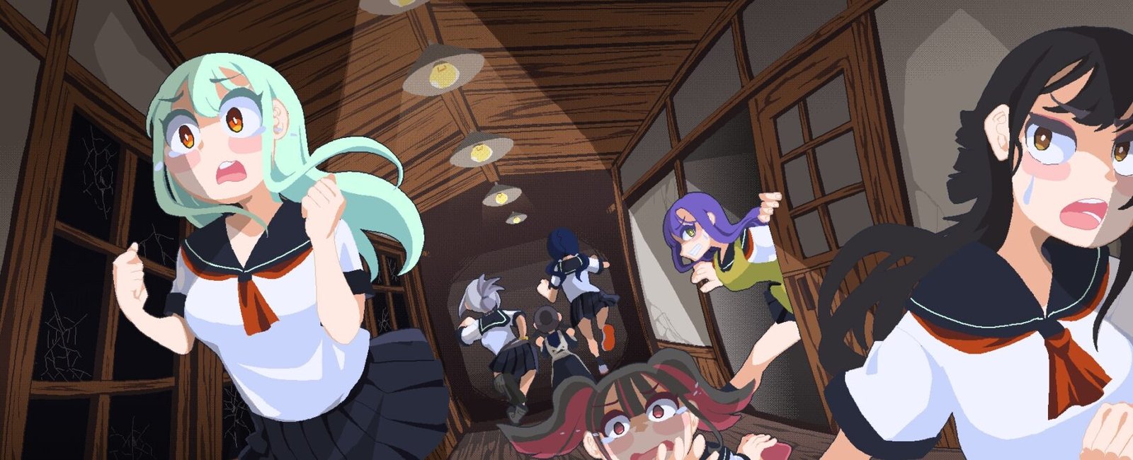 她们因那异样的姿态而恐惧,四散逃窜,却被已变样的校舍困住,只能屏息躲藏。